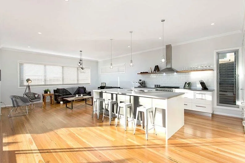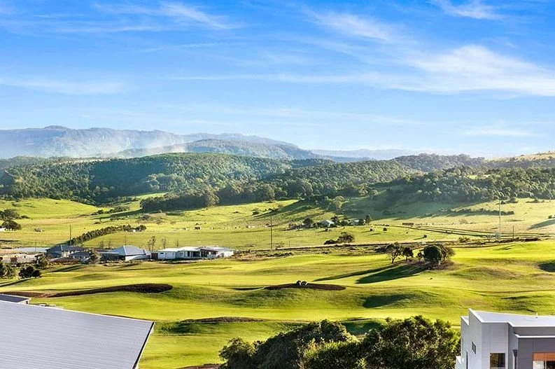 This beautiful two-storey home started out as a challenge - with a steep, sloping block of land in a fantastic location. We worked with the land contours to captivate natural light. The sloping land allowed for us to gain breathtaking views of the nearby golf course and a backdrop of the escarpment in the distance. In the afternoon the sun pours through the living areas. This home was designed to dazzle!