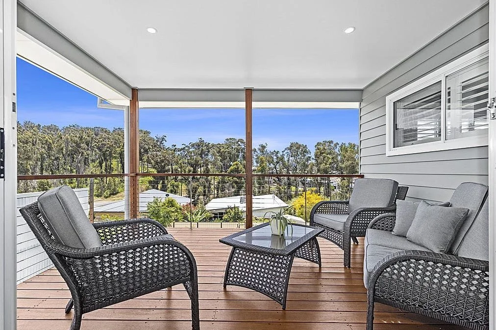 A calm nestled amongst the natural backdrop, this home was designed for a retired couple looking to wind down. Designed with the needs of the client in mind, it has a cushy home theatre room for a quiet night in, and a large sloping rear yard to tend to the garden whilst admiring the bushland beyond.